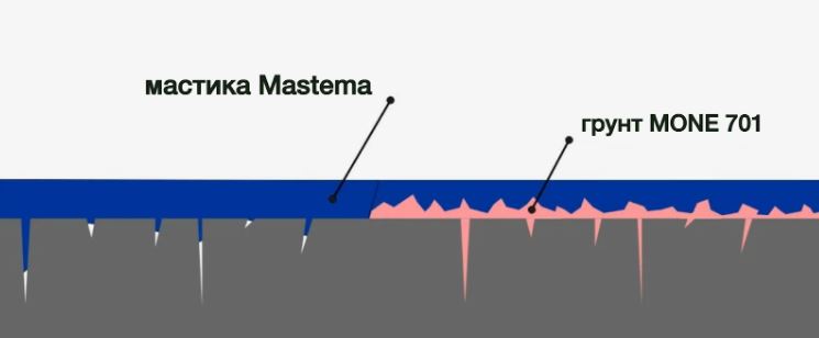 - Нанесение мастики Mastema толщиной 1 мм на поврежденную зону.